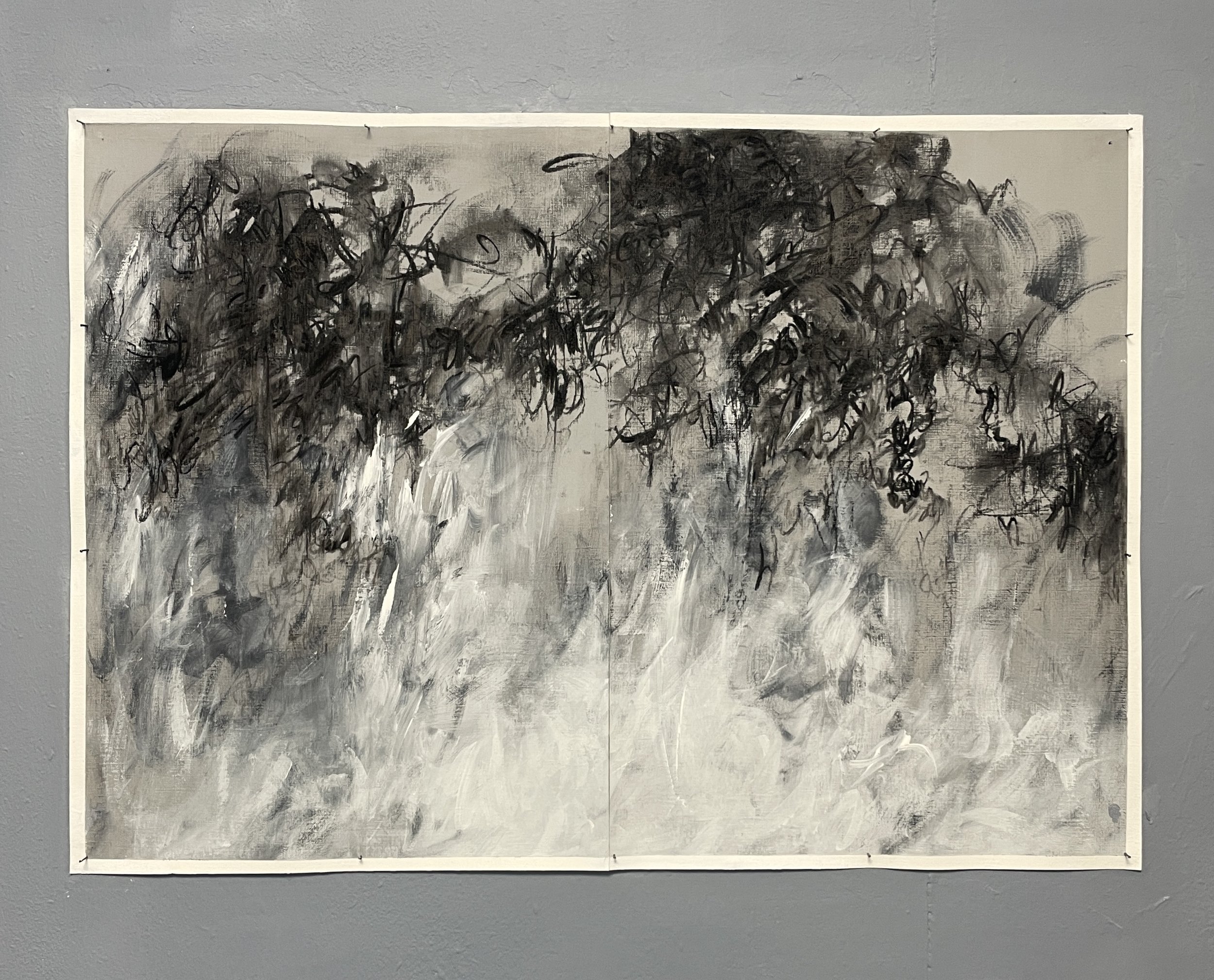 Yuhsuan Pai, The Unsettled Body II, 2025, charcoal and gesso on paper, 58.6 × 41.5 cm.