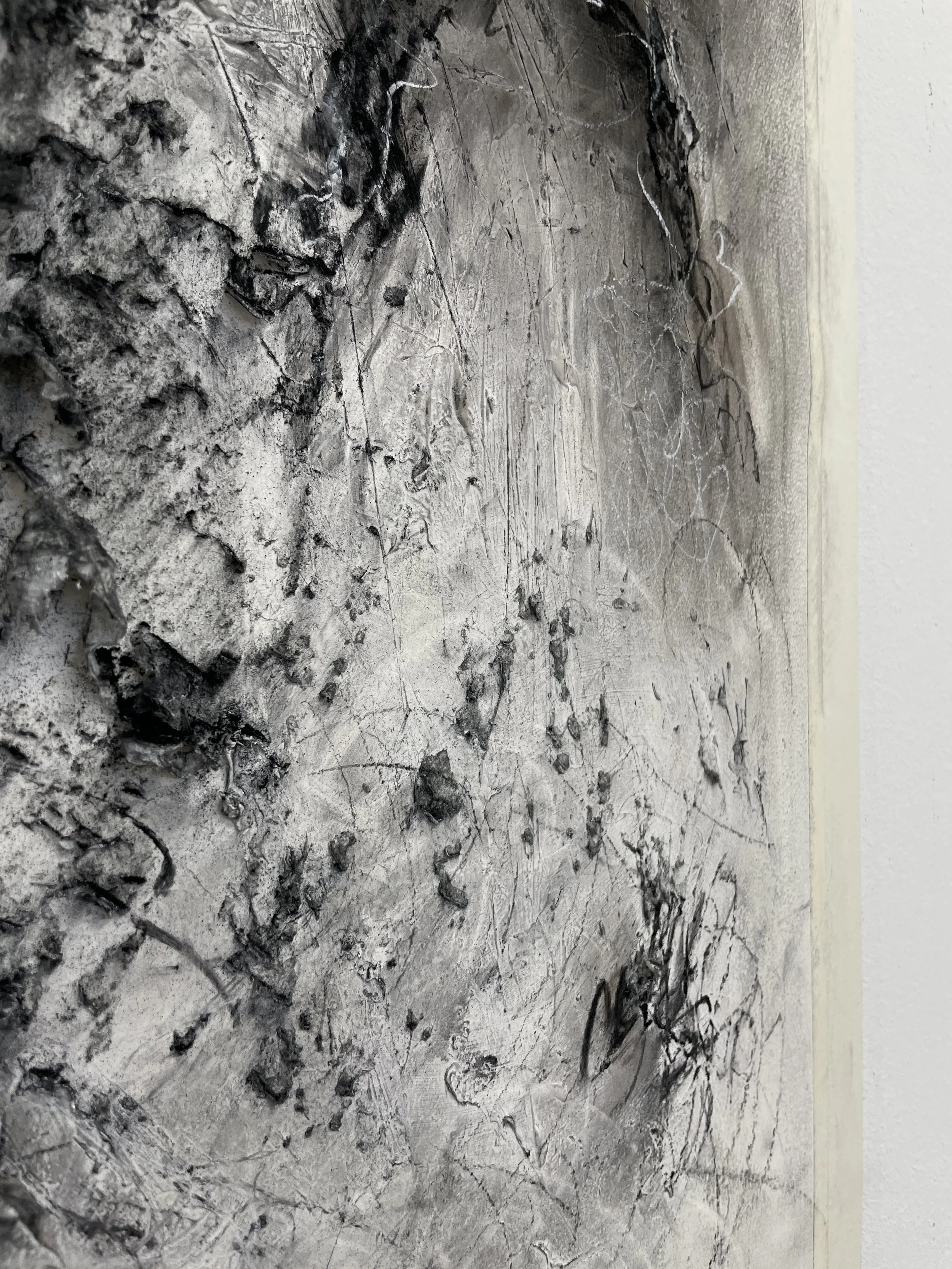 Yuhsuan Pai, Figure Practice III, 2025, charcoal and gesso on paper card, 59.4 × 84.1 cm.